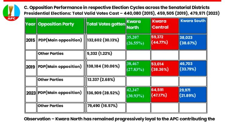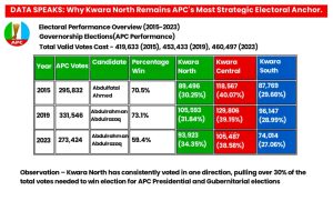 Beyond political rhetoric, the strongest case for zoning the APC governorship ticket to Kwara North lies beyond sentiments and the call for equity but in hard electoral data spanning three election cycles (2015 – 2023). A careful analysis of both governorship and presidential results reveals a consistent and strategic pattern: Kwara North is the most dependable contributor to APC victories in the state.