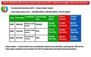 Reliability: Unlike other regions where voting patterns fluctuate, Kwara North remains predictably aligned with the APC as backed by data.